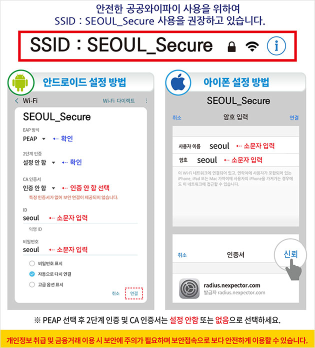 와이파이 식별자(SSID) : SEOUL_Secure