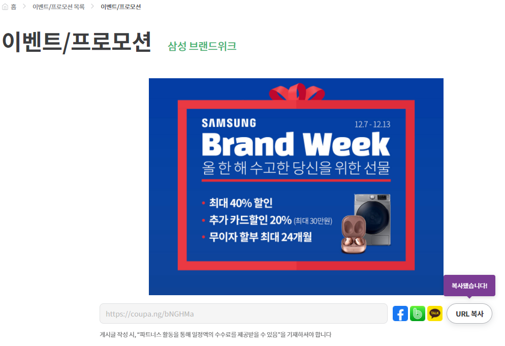 현 쿠팡에서 이벤트 진행중이거나 프로모션 진행중인 링크 정보를 복사하여 사용하는 방식입니다.