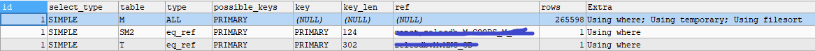 위의 사진은 explain 결과 값인데 첫번째 라인에 key가 없어서 기본으로 조회되는 row가 26만건