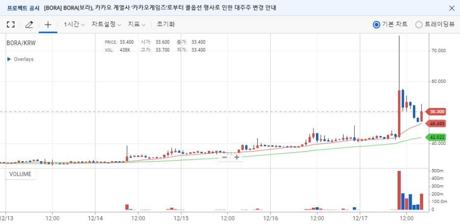 카카오케임이 보라코인의 45% 로 대주주 등극!!