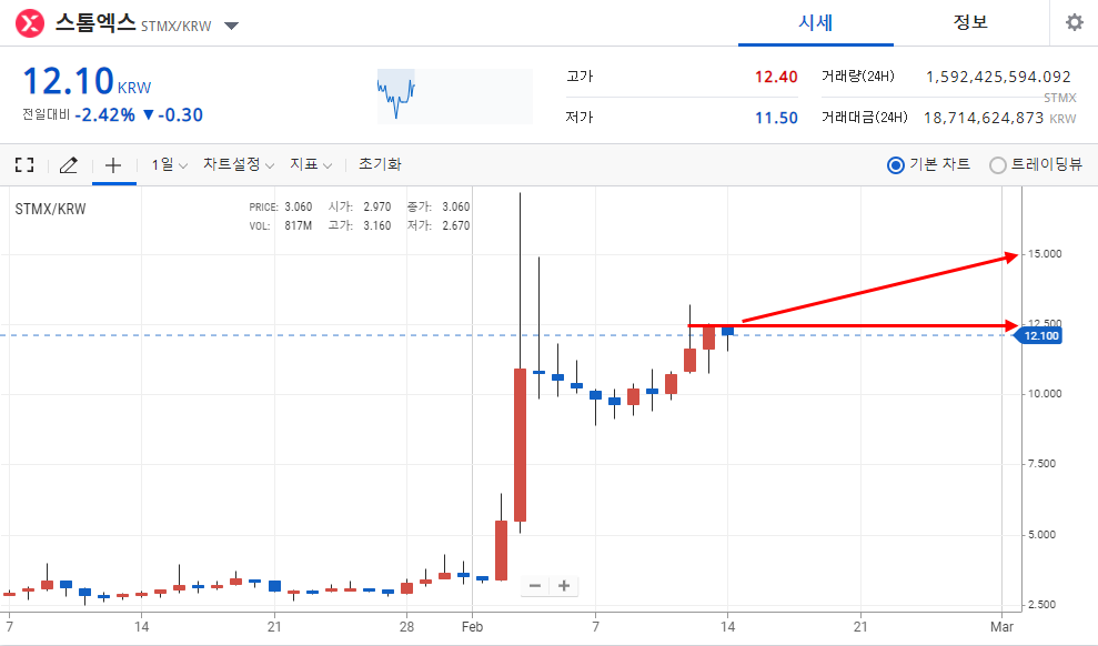 STMX는 스톰이 바뀐 명칭입니다. 거래량도 최근에 꾸준히 상승하고 있으며 그만큼의 가치의 상승도 같이 확인이 되어 진행중입니다.